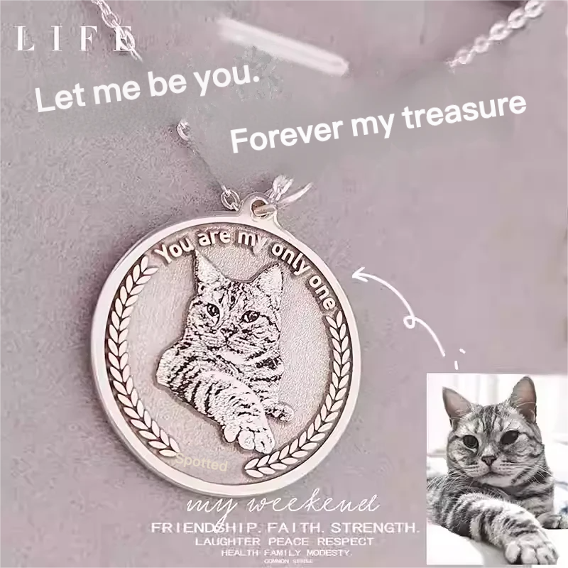 Crafted from premium sterling silver, this pendant captures not just the image of your pet, but also their essence. Each necklace is custom-made, ensuring that the engraving of your pet’s photo and optional text stays vibrant and long-lasting. The pendant’s sleek and polished design ensures it complements any outfit, while its lightweight feel makes it comfortable to wear every day.